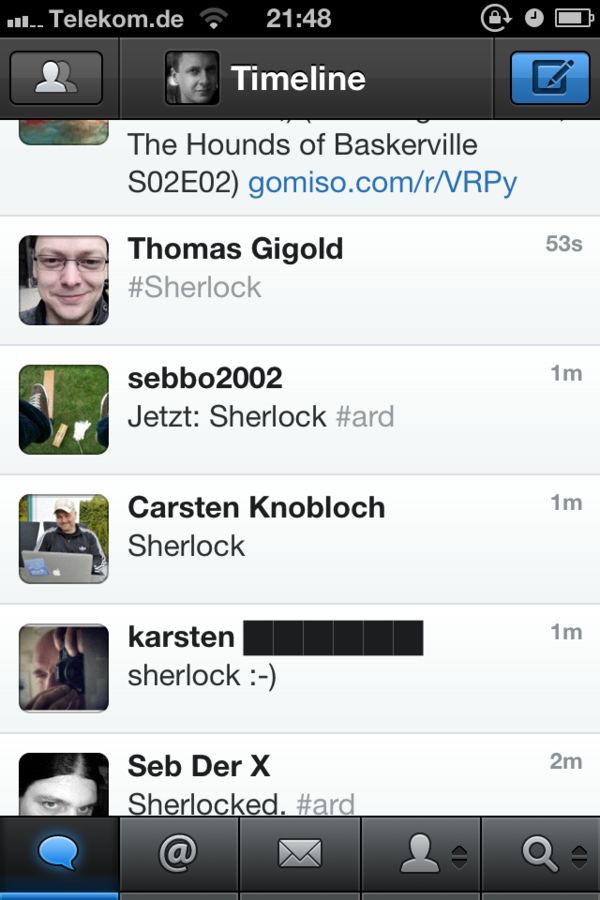 Die letzten 7 Tweets enthielten “Sherlock”.
